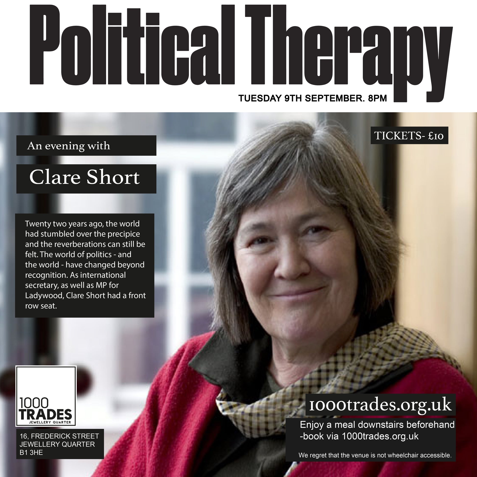 1000 Trades Presents Political Therapy: An Evening with Clare Short